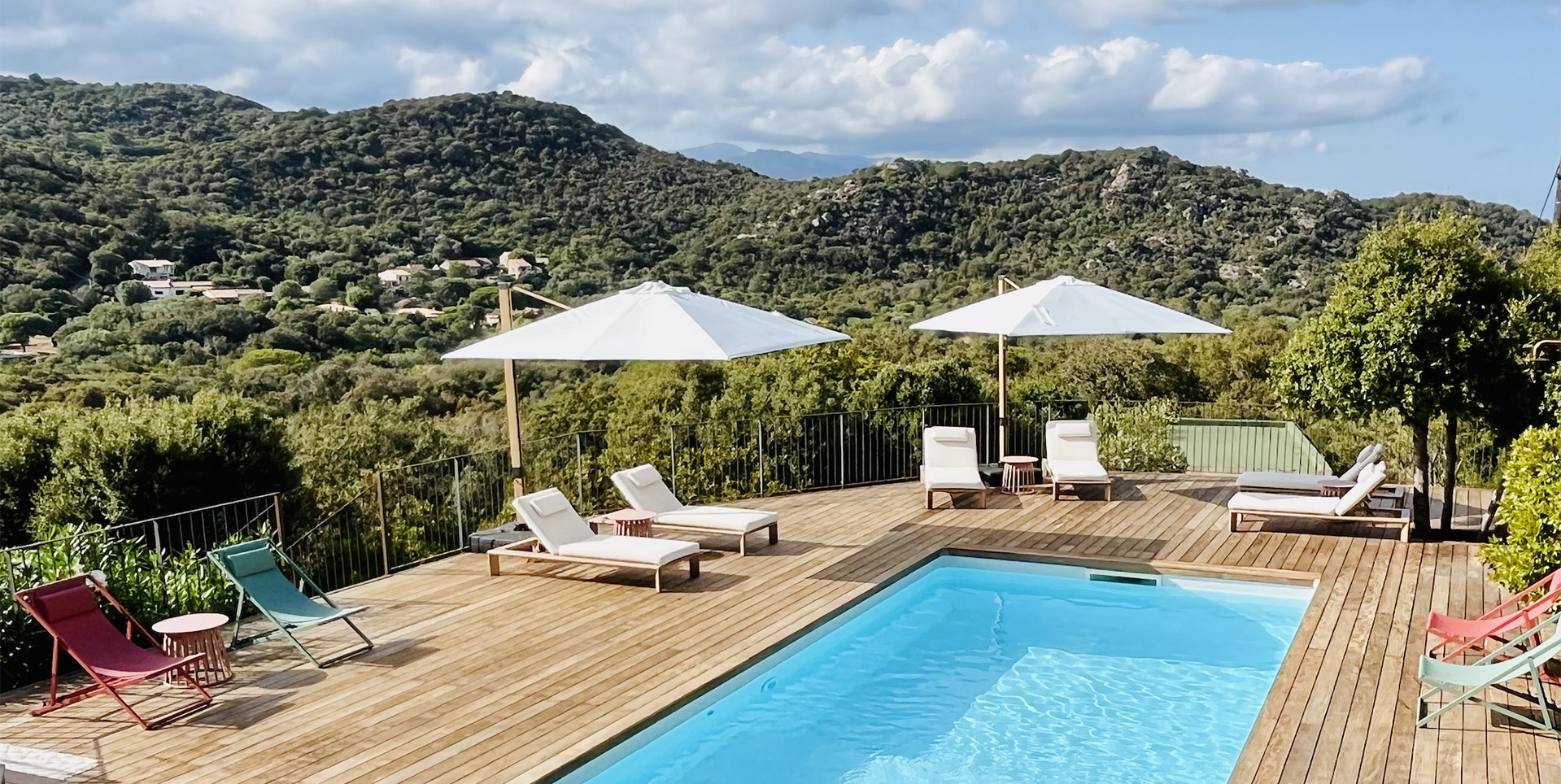 - Transats confortables et parasols