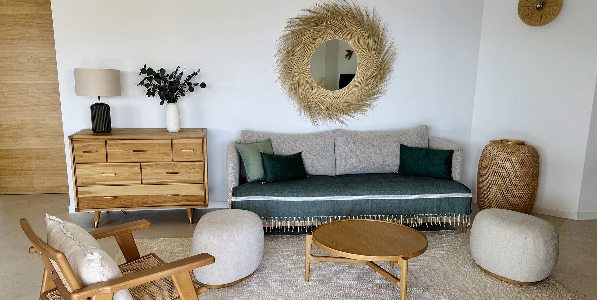 Les espaces de vie, ouverts et lumineux, invitent à la détente et au partage, que ce soit autour d'un dîner convivial en plein air ou d'un apéritif face au coucher du soleil.